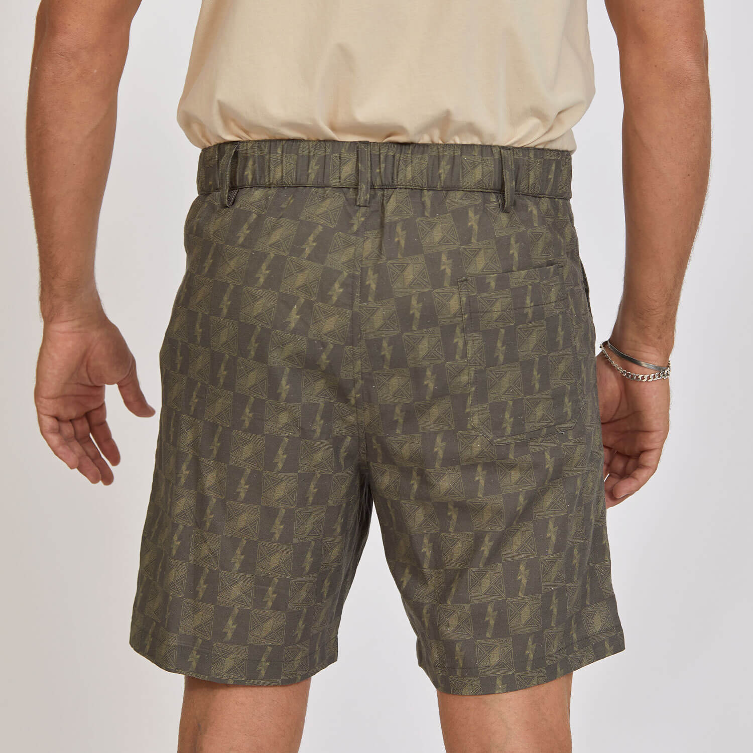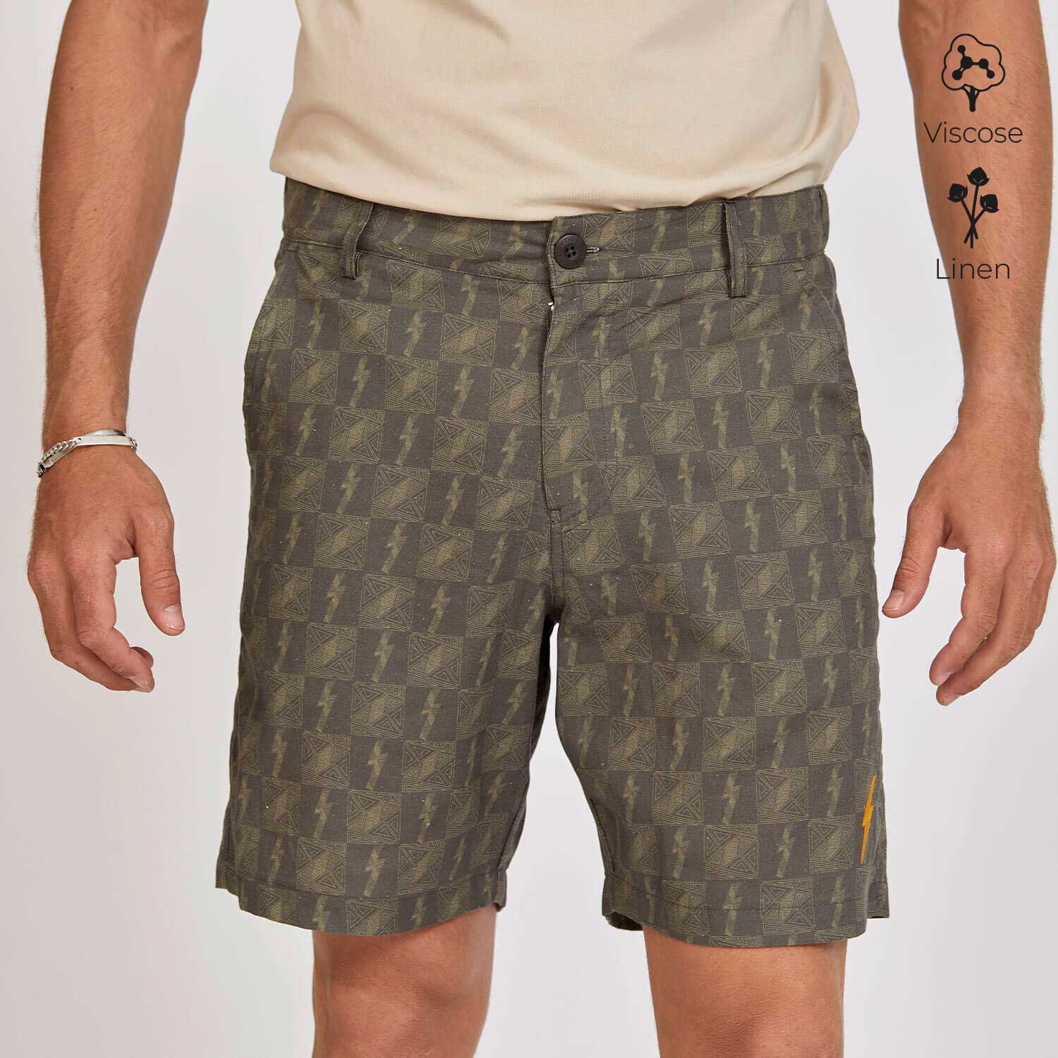 Este walkshort combina o toque fresco do linho com a fluidez e suavidade da viscose, criando uma peça leve, respirável e extremamente confortável. Com cinta fixa e fecho com botão, oferece um ajuste perfeito e um look descontraído, mas sofisticado. O motivo integral adiciona um toque de personalidade e modernidade, ideal para dias quentes ou para um estilo urbano com alma natural.