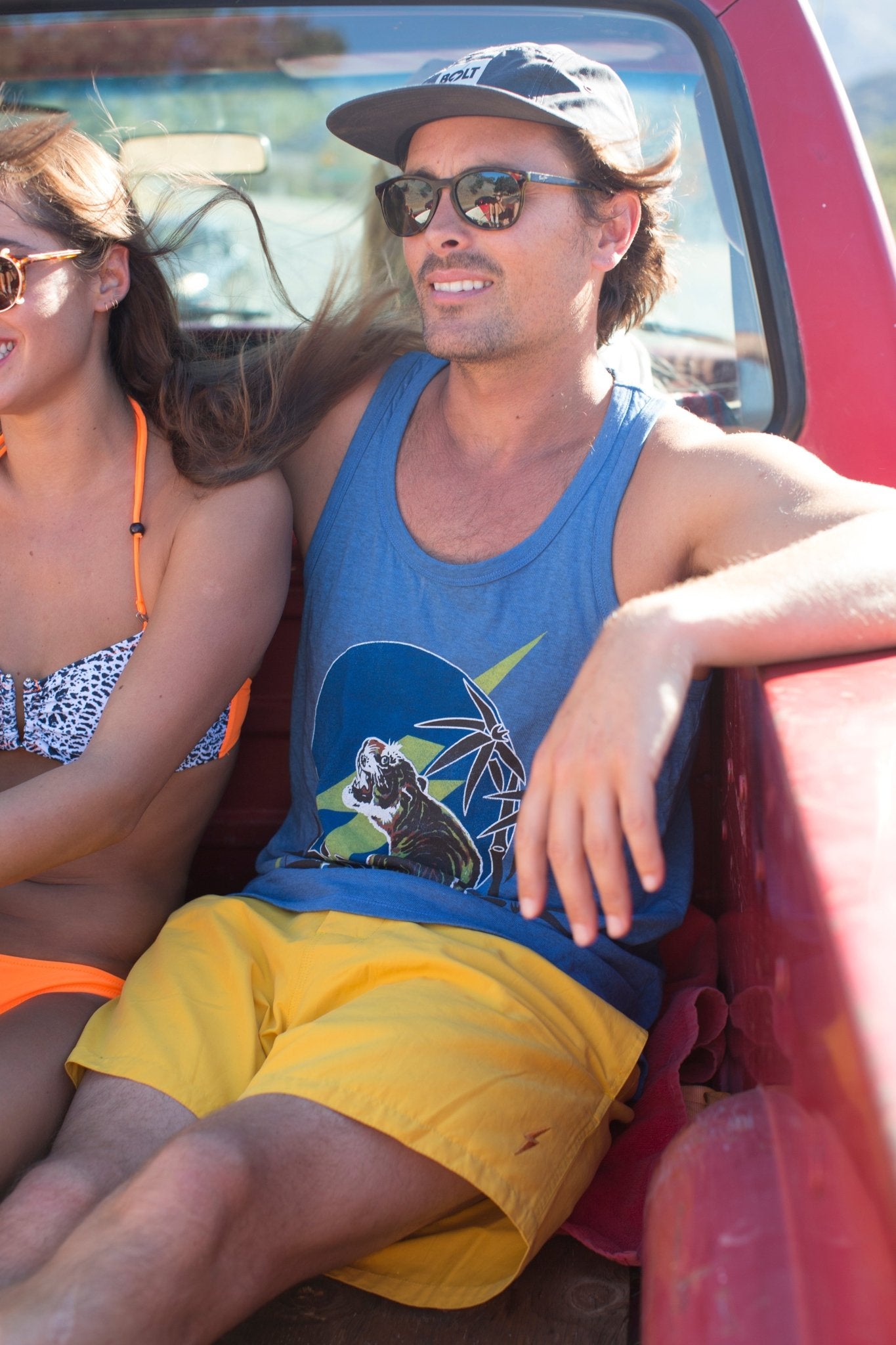 Made from soft, structured knit fabric, this blue tank top offers comfort and style in perfect balance. Featuring a bold Tiger front print, it adds a touch of surf-inspired attitude to your look. Finished with an internal lining for a smooth and premium feel — ideal for everyday wear or layering on cooler days.