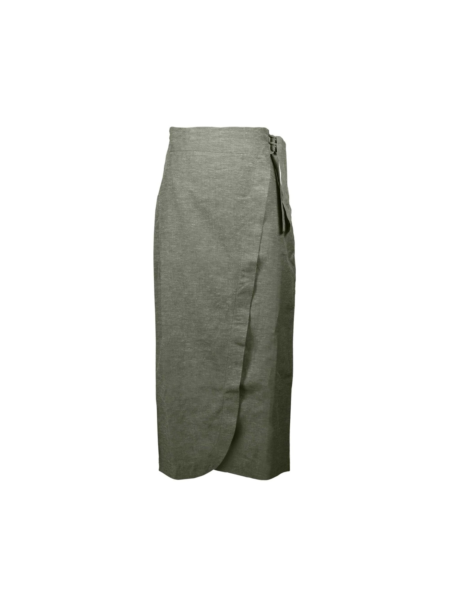 Produzida em linho respirável, o design da saia cruzada adiciona um toque de charme intemporal, criando uma silhueta lisonjeira e confortável. A cintura elástica na parte de trás garante um ajuste confortável, permitindo ao mesmo tempo flexibilidade de movimento.