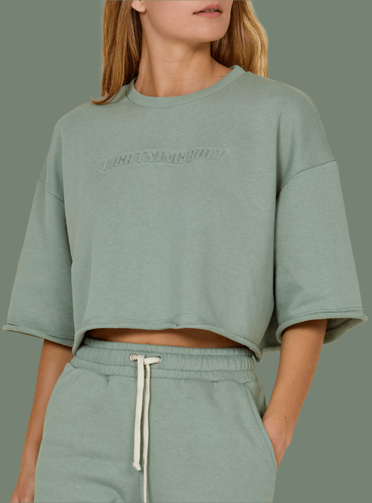 Cropped T-Shirt & Sweatshorts com Bainhas Desfiadas Set